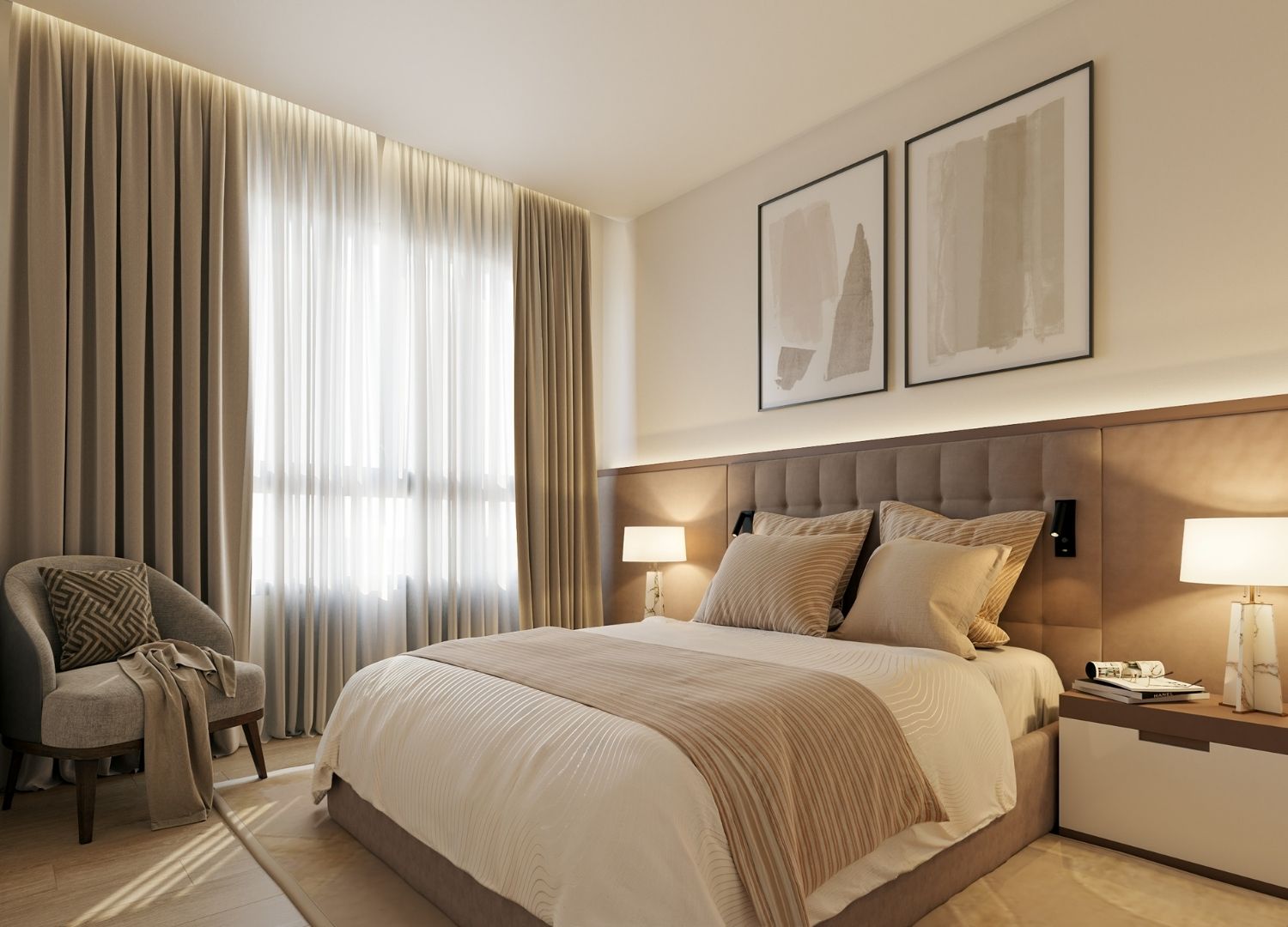 El diseño interior prioriza la funcionalidad, incorporando en la mayoría de las unidades un espacio técnico independiente de lavandería, liberando así espacio en cocinas y terrazas. Además, las plantas bajas cuentan con el atractivo de un jardín privado, ideal para disfrutar del clima exterior con total intimidad.
